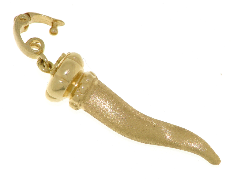 | Beschreibung Anh?nger komplett aus 18 kt - 14 kt - - Gelbgold in Form eines Horns in galvanisierter Verarbeitung und komplett satiniert. Öffnungsschlie?ung Ma?e des Goldhorns 3.70 * 0.80 cm inklusive Gegengitter Horngewicht gr 1.40. | |