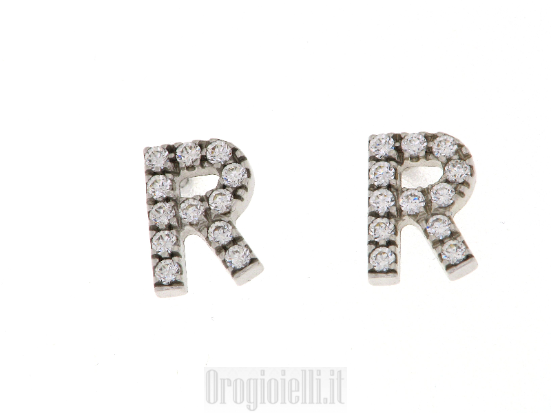 | Beschreibung Ohrringe komplett aus 18 kt - 14 kt - - Weißgold in Form einer Initiale „R“, alle besetzt mit weißen Zirkonen. Sie sind in allen Buchstaben des Alphabets A-Z erhältlich. Maße cm. 1,00 * 0,60