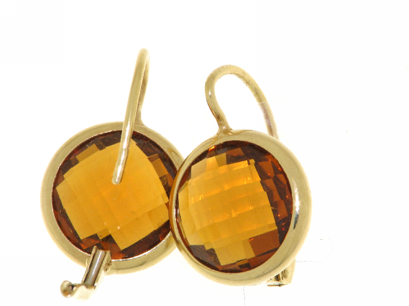 | Description Earrings made entirely in 18 kt - 14 kt - yellow gold with citrine orange stone central (faceted). Dimensions of earrings cm.2.10*1.40 Closing nun Weight earrings gr 6.00
