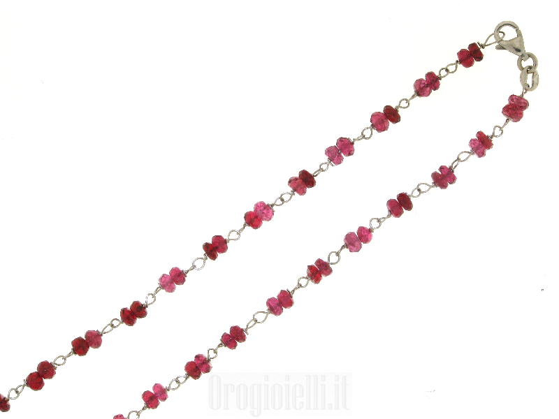 Necklace made entirely of 18 carat white gold alternating with white mesh and pairs of small rubies.