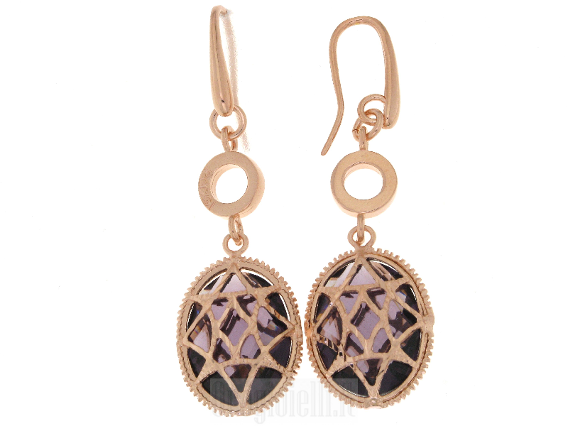 Earrings made entirely of bronze, stone hydrothermal oval amethyst (purple) cm. 2.00 * 1.60) with diamond external processing. Length cm. 5.20 Shipping costs charged to the recipient